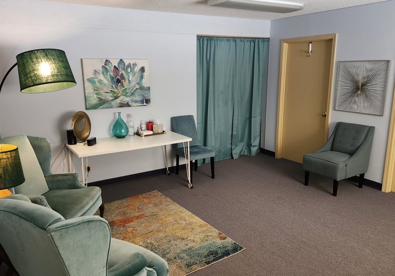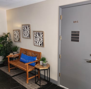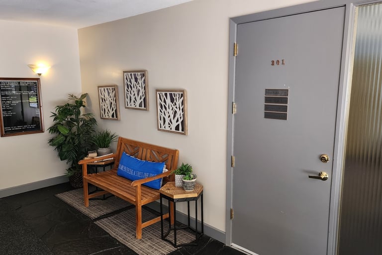 When you walk into the "Outdoor Bldg," you will see Suite 201 off to your right: please come in and get comfortable until our session time.